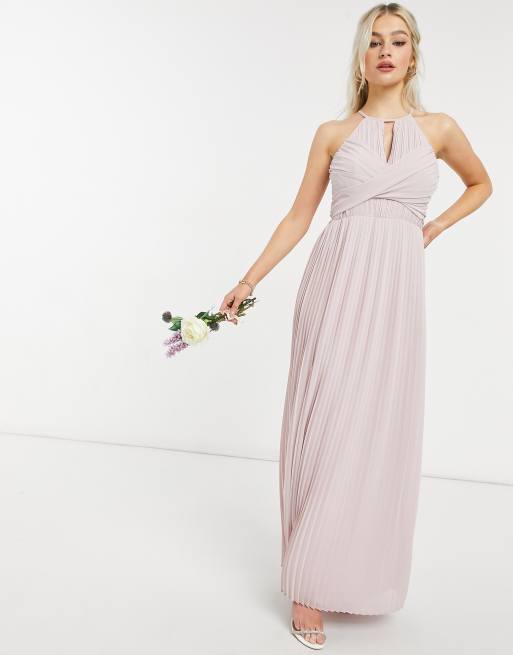 TFNC Petite bridesmaid pleated wrap detail maxi dress in mink Very well made.