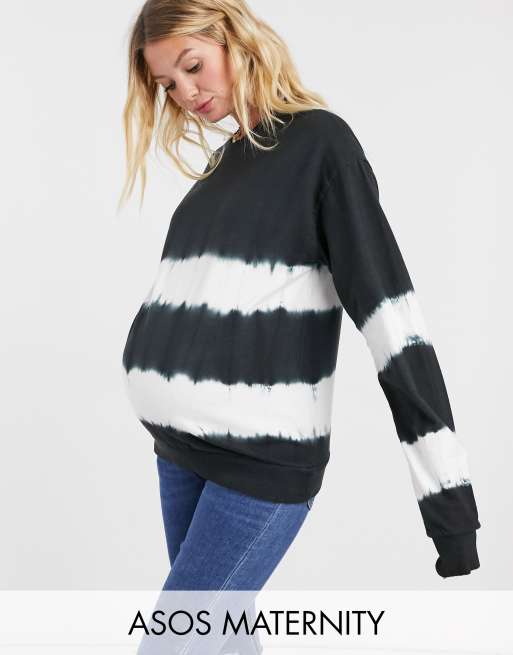 ASOS DESIGN Maternity sweatshirt in charcoal tie dye stripe Very well made.