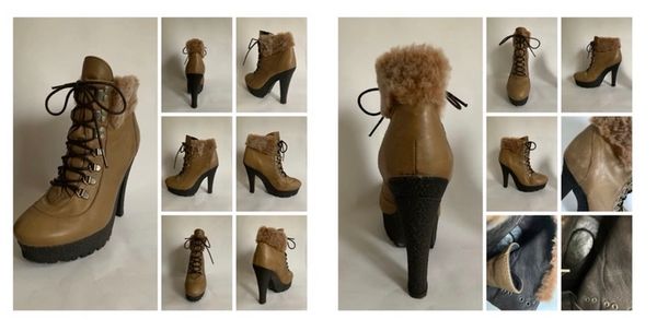 Topshop Ankle Boots Light Tan Steampunk 5 inch Chunky Heel Lace Up Very well made.