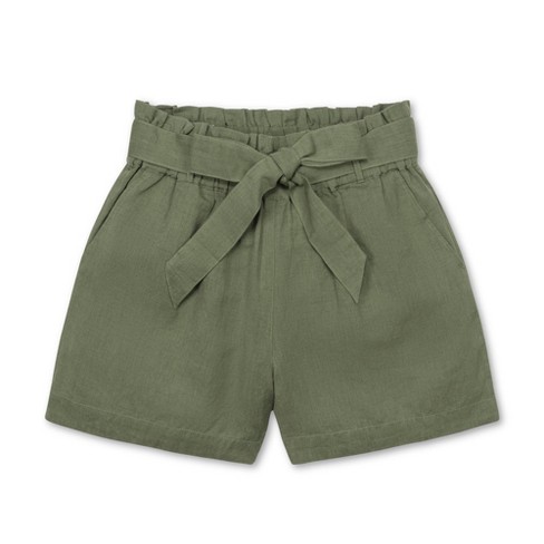 Hope Henry Womens Cinched Waist Short Olive Light Linen 2 Very well made.