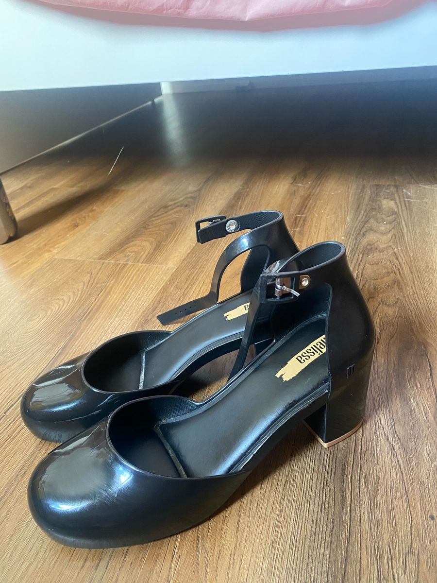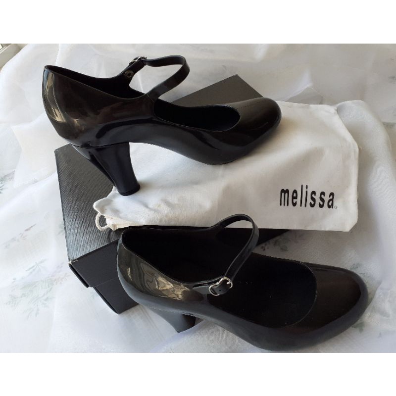 MELISSA Sapato estilo boneca em pl stico no tom preto salto Very well made.