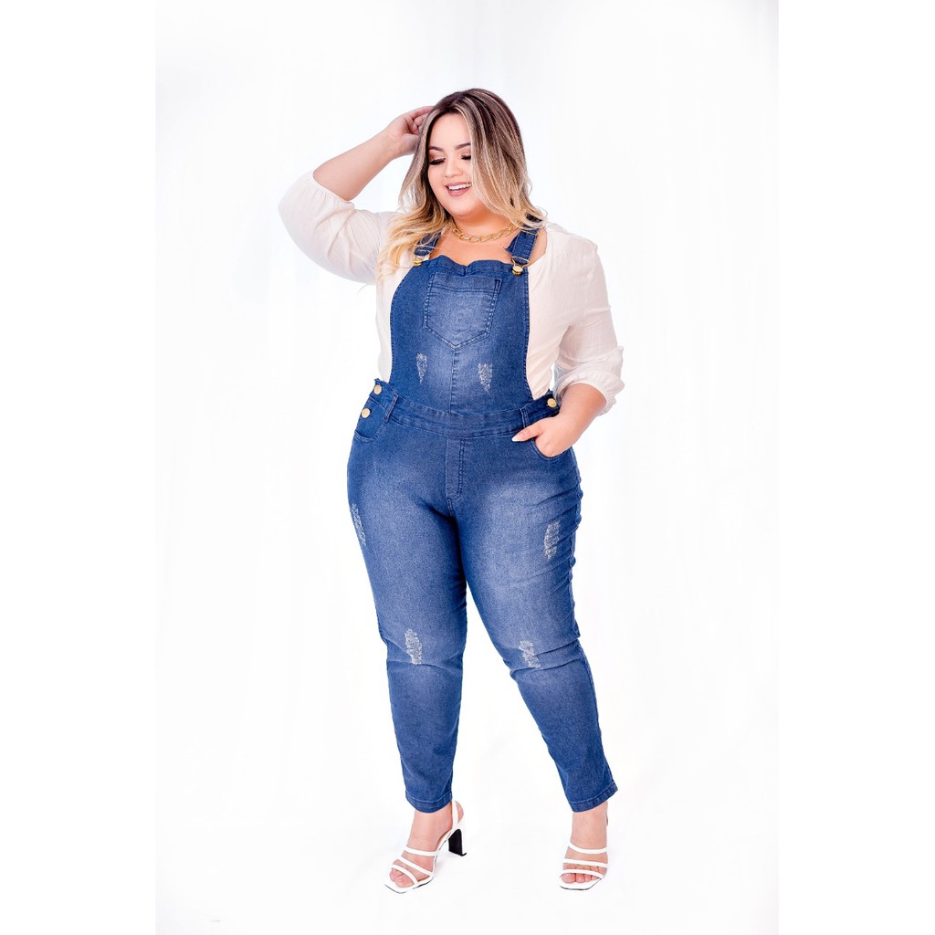 Jardineira cal a jeans plus size com lycra c s alto Escorrega o Very well made.