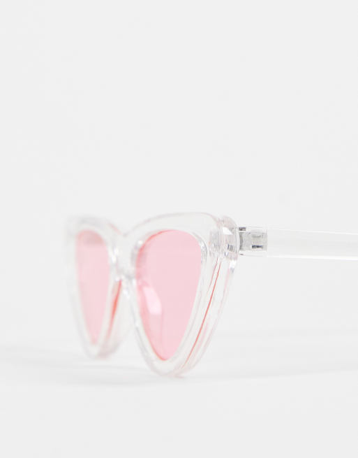 Jeepers Peepers cat eye sunglasses with clear frames and pink lens Very well made.
