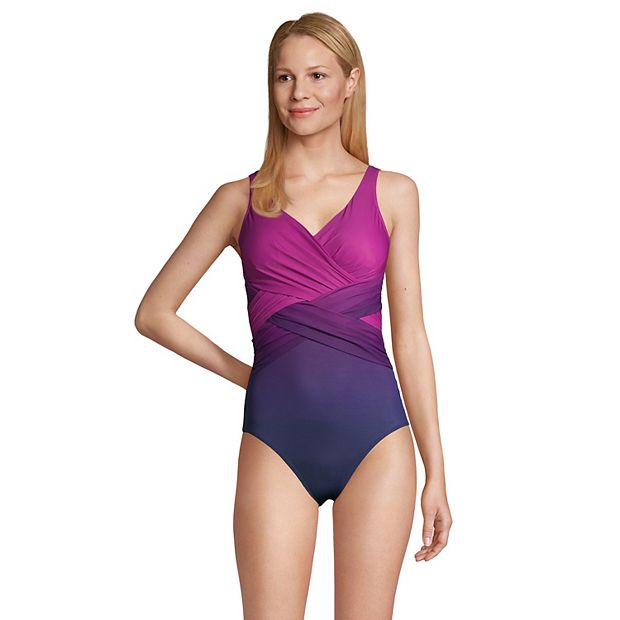 Women s Lands End SlenderSuit DDD Cup Surplice One Piece Swimsuit Very well made.