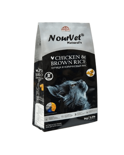 Nourvet Kitten & Adult Cat Dry Food Chicken With Brown Rice – 1Kg